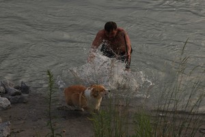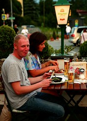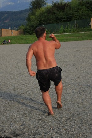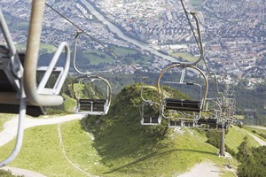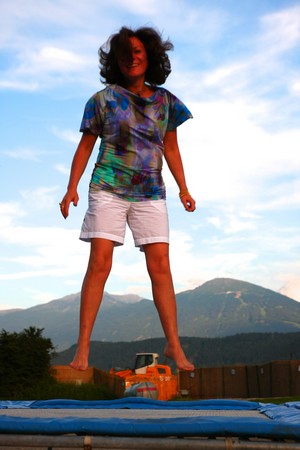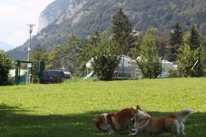 На этой стоянке мы прожили с вечера воскресенья до утра среды – два с половиной фантастически чудесных дня. В шаговой доступности были: сам Инсбрук (ясное дело, в выставочные дни мы ничего толком не посмотрели, а хотелось), канатная дорога на вершину горы и речка с зоной отдыха: пляж, батут (батут – отдельная песня) и очень приличный рестаран-терраса. Так что утром и днем и у нас, и у собак была культурно-развлекательная программа в городе и на горе, а по вечерам – пикники на берегу альпийской речки.