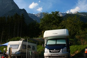 От следующего пункта нашей выставочной программы нас отделяли 5 дней и 540 километров пути. Уезжать из Инсбрука сразу после окончания выставки ни необходимости, ни смысла не было – к тому времени Европу, только-только выкарабкавшуюся из антициклона Калигула, уже накрыл еще более зверский антициклон Люцифер, на равнинах жара стояла адская, а в Альпах все-таки попрохладней. На карте города были отмечены 5 туристических кемперных стоянок, мы выбрали ближайшую к реке и отправились прямиком туда. Свободные места, как и ожидалось, были – мы выбрали самый дальний угол, с выходами в лес и на огромную лужайку.