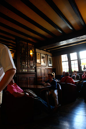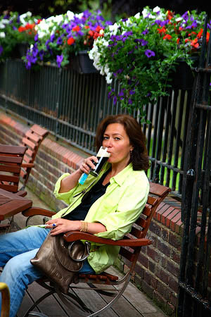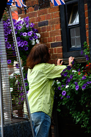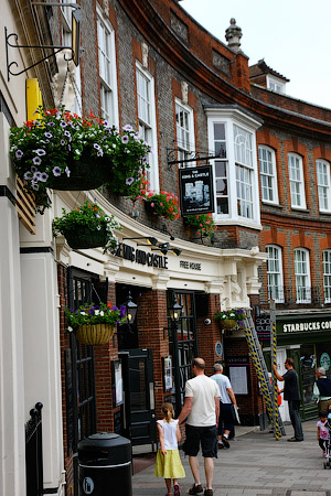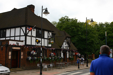 На обратном пути зашли в Королевский Дуб. Очень приятный паб, что характерно - недалеко от нашей стоянки :))) Дуб - типичный английский паб, очень традиционный как внутри, так и снаружи, мы туда заходили регулярно (потому что хорошие люди походят, походят, да и выпьют, это правило хорошего тона такое в Англии), но по причине теплой погоды сидели всегда на улице (ну, и еще потому что мы курим, а в помещениях курить нельзя). И мне постоянно не давал покоя вопрос - что это за маленькое окошко все в цветочках, что ж за ним такое? В какой-то момент любопытство взяло верх над приличиями, но заглянуть не удалось - высоко. Потом выяснилось, что заглянуть я пыталась в окно мужского туалета, слава богу, не видел никто...