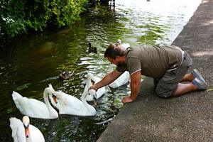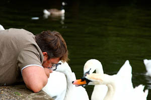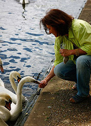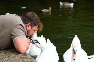 Первым номером развлекательной программы шло кормление и ловля лебедей и диких гусей. "Ловля" - это, конечно, громко сказано, но иногда удавалось подержаться за лебединые крылья и даже шеи. С Андреем они нежно целовались, после чего теряли бдительность и вот тут-то и наступал собственно момент "ловли",