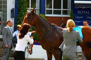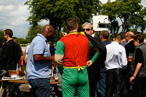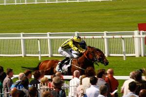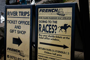 А потом обнаружилось, что с той же самой пристани на том же самом параходике можно доплыть до Виндзорского ипподрома. Всего-то 20 минут ходу, вышел - и ты там, а потом тем же манером можно на очередном параходике обратно вернуться. Ну, излишне говорить, что ТАКУЮ возможность упустить было невозможно. Тем более, как раз суббота (скачки по субботам и воскресеньям). И как раз погода, как на заказ - очень солнечно и ветренно, и на выставке в этот день наших рингов нет... И денежек некоторое количество еще имеет место быть неизрасходовано... Дураками надо быть, чтоб не поехать. Ну, мы и поехали.