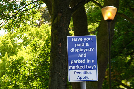 Кстати, была там и еще одна табличка - наша любимая. Не могу обойти её вниманием. Она там была везде. В двух вариантах: "Заплати и покажи!" и "А ты заплатил и показал? Применяются наказания". Вот так-то, наказания. Penalties по-ихнему. По-нашему, выходит, пенальти, как раз в тему к Евро 2012... Сперва было не совсем ясно, что имено надо показывать, вдобавок почему-то предварительно заплатив за возможность показать то, что они хотят увидеть (мы-то привыкли наоборот: платит не тот, кто показывает, а тот, кто смотрит). И еще было немного тревожно - пенальти пробивают непоказавшим-то, а мы даже не до конца уверены, чё показывать, кому и где. Я сперва пыталась переложить ответственность на Андрея - мол, ты за рулем, ты и показывай. Он он показывать отказался наотрез - неизвестно, какие там у них пенальти, если не дай бог не то покажешь... Но все обошлось - как выяснилось, показать надо было всего-навсего суточный парковочный билет, предварительно заплатив на него 6 фунтов :)))))