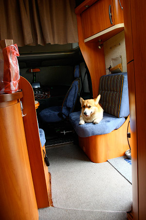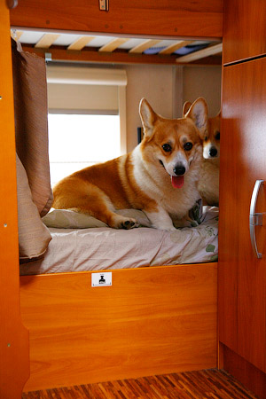 Собаки наше решение проводить время в основном на стоянке поддержали безоговорочно. Во-первых, в автодоме можно невозбранно валяться на низких кроватях и на диванчиках, а в гостинице с кроватей гоняют, да и поди еще запрыгни на ту кровать на коротких-то ножках.